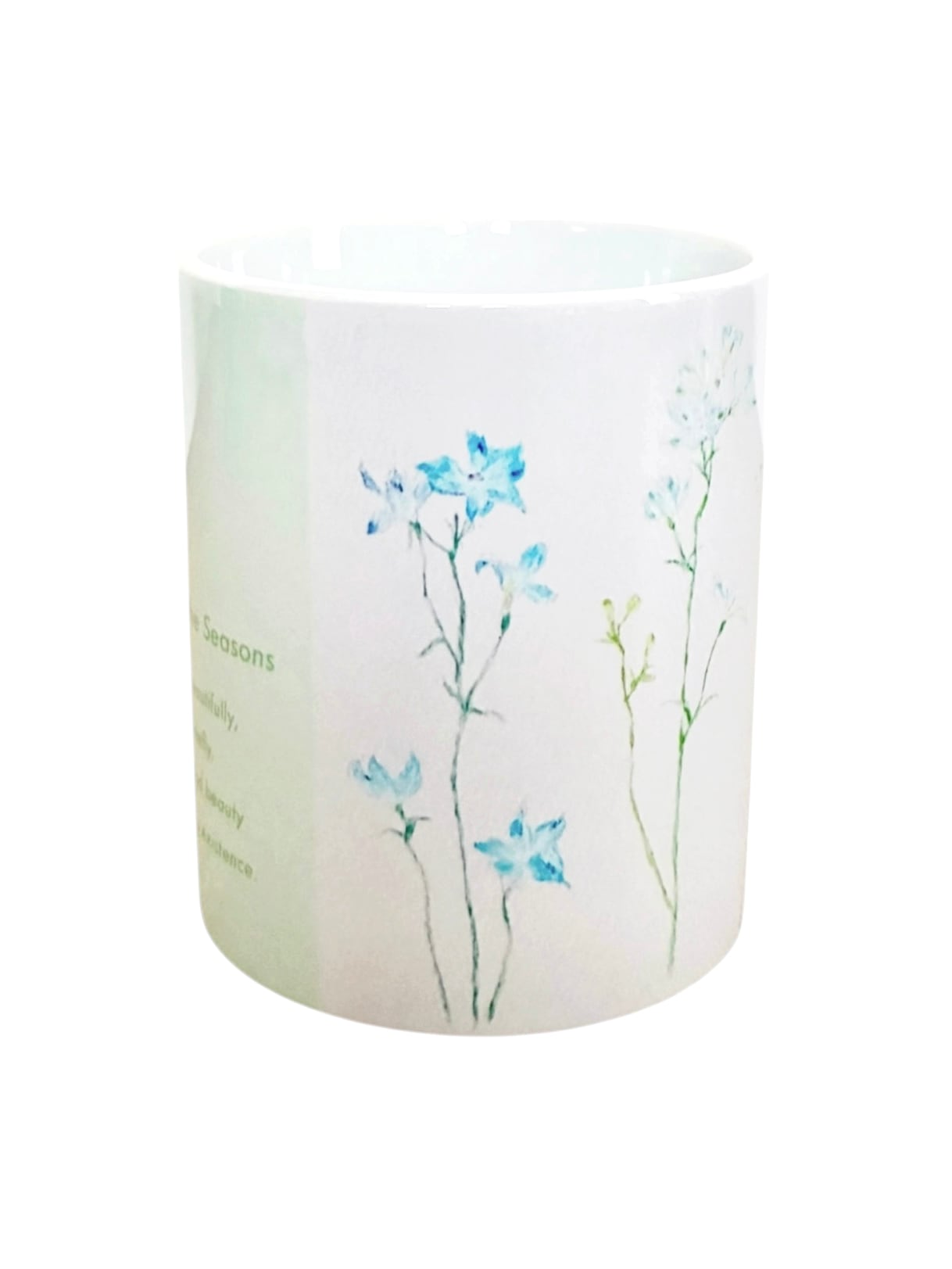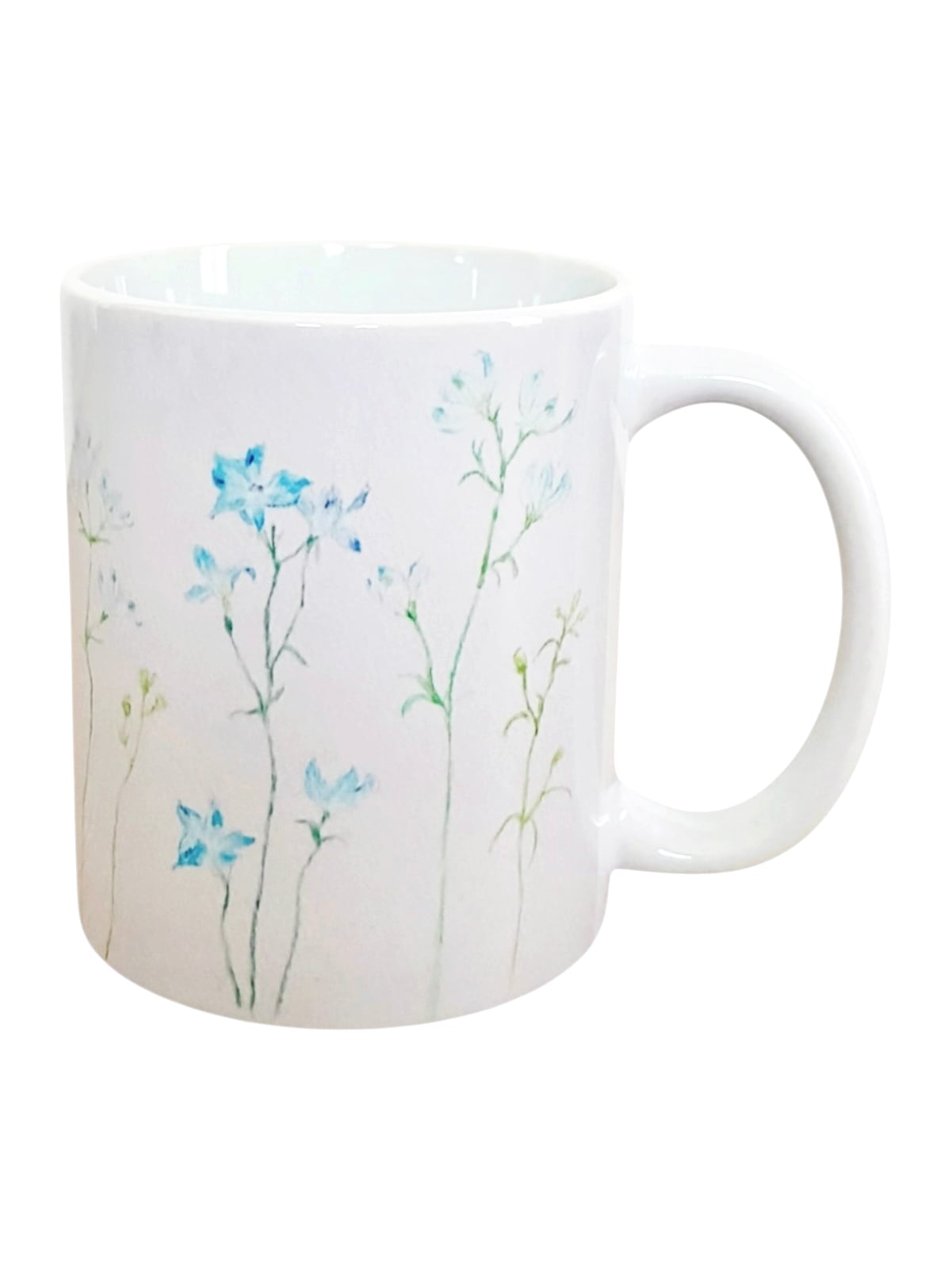 デルフィニウムの水彩画をプリントしたオリジナルマグカップ。